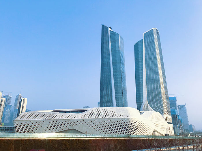 第二屆南京青奧中心雙塔及裙房項目外幕墻泛光照明專業工程,2015年阿拉丁神燈獎工程類參評項目,也是2014第二屆南京世界青年奧林匹克運動會會議中心及接待酒店的雙塔樓,地址位于南京市西部建鄴區青奧中心CBD與商業居住軸線的交叉點,面對江心洲,是青奧建筑群的重要配套,是享譽國際的建筑設計大師扎哈在國內的第一個建筑作品,外形獨具特色和寓意,酷似一艘起航的帆船,雙塔象征風帆矗立在碩大的船體上。