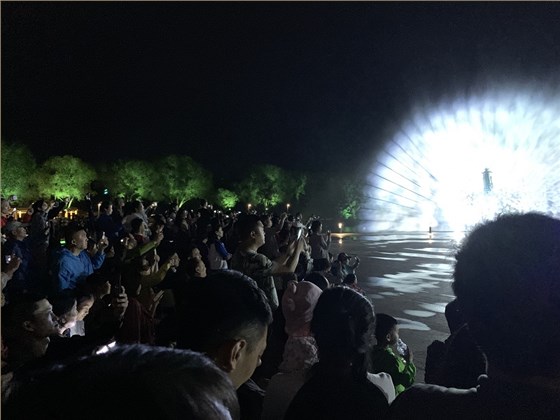 為確保首秀的效果,自6月25日起信達(dá)電通主創(chuàng)團(tuán)隊(duì)多次夜間試演調(diào)試。現(xiàn)場(chǎng)吸引了眾多人潮和多方媒體的廣泛關(guān)注,守望都市、長(zhǎng)春播報(bào)、新文化報(bào)等媒體相繼進(jìn)行報(bào)道。信達(dá)電通設(shè)計(jì)總監(jiān)孫彥飛先生在試演現(xiàn)場(chǎng)接受采訪,向各大媒體解答水景秀的特色設(shè)計(jì)理念和技術(shù)實(shí)施問題。