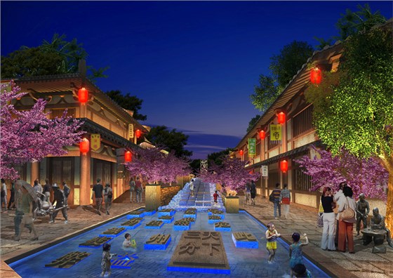 信達(dá)科技根據(jù)忠義街布局、載體特點(diǎn),對(duì)整體夜景進(jìn)行規(guī)劃,并對(duì)建筑、廣場、雕塑、水體、景觀、道路等載體進(jìn)行具體設(shè)計(jì),打造一場互動(dòng)體驗(yàn)式的三國主題度假休閑之旅。