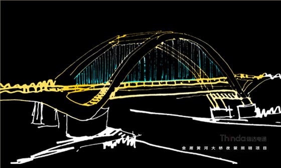 橋體整體為流暢的線條,我們在亮化設計中選用簡約光色勾勒橋體,用燈光來詮釋橋體的靈魂。光色上用黃色或者淡藍色,在照明時可以通過照明控制系統(tǒng)調試不同的展示效果,因為展示效果并不復雜,所以控制系統(tǒng)在功能的采用中選擇穩(wěn)定、控制效果單一的即可。