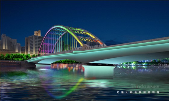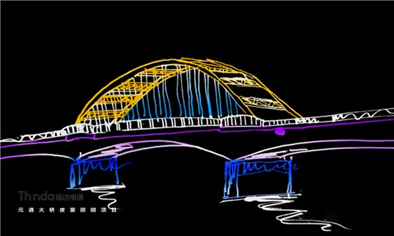 元通大橋北起靖遠路高架橋,主跨跨越黃河,全長459米,屬于城市次干路。信達電通聯合橋梁照明設計師對元通大橋進行全面調研定并針對橋梁功能、夜景需求進行設計,設計手法動靜結合,簡單與復雜、精致與粗獷、明與暗、虛與實、冷與暖在燈光中體現。