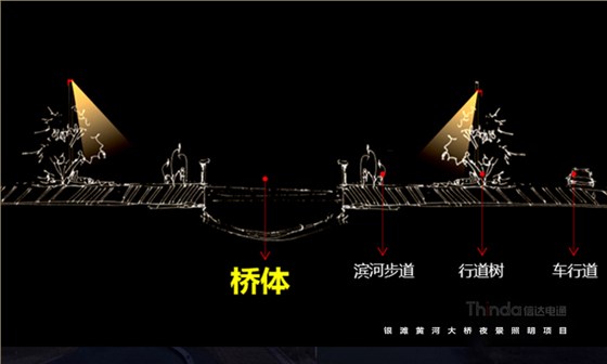 銀灘黃河大橋夜景亮化設計中我們以功能性、裝飾性照明為主,同時也避免高亮度、多光色對行車造成安全隱患。