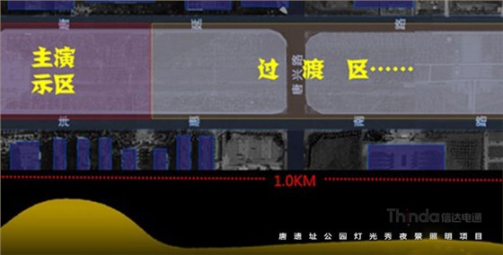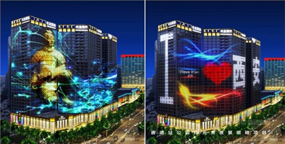 西安高新區(qū)北廣場區(qū)域?yàn)闊艄庑愕闹匾诵?,往南后逐漸弱化,直至延平門廣場后落幕,同時(shí)兩側(cè)高層建筑頂部燈光顏色變化與整場燈光秀節(jié)奏相呼應(yīng)。項(xiàng)目位于西安市高新區(qū)核心區(qū)域,由科技路、唐延路、科技一路、灃惠南路相環(huán)繞而成,結(jié)合西安地域文化特色,以文化為內(nèi)涵,讓傳統(tǒng)文化與現(xiàn)代信息交互向榮,將廣場簡稱一個(gè)高起點(diǎn)的、具有時(shí)代氣息的、娛樂休閑賞景相結(jié)合的文化中心場所,配合兩側(cè)建筑照明,充分展示西安的城市新形象。