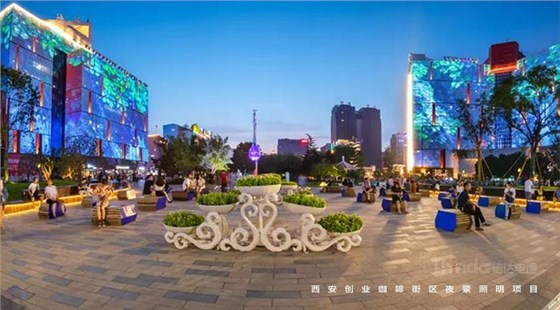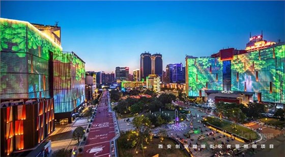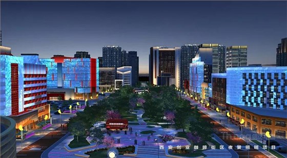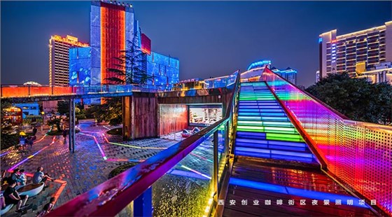信達(dá)電通在2017年完成了眾多大型城市亮化項(xiàng)目,其中濃墨重彩的一筆當(dāng)屬西安創(chuàng)業(yè)咖啡街區(qū)的亮化。