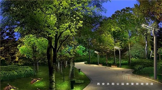 永陽(yáng)公園的亮化使用綠色智控系統(tǒng)。燈光材料的選擇是根據(jù)被照物的具體情況選用低耗能的LED、EL光源和用紫外線照射發(fā)光的熒光涂料做裝飾照明。