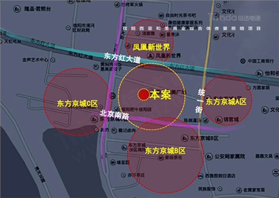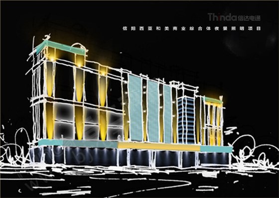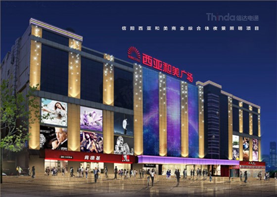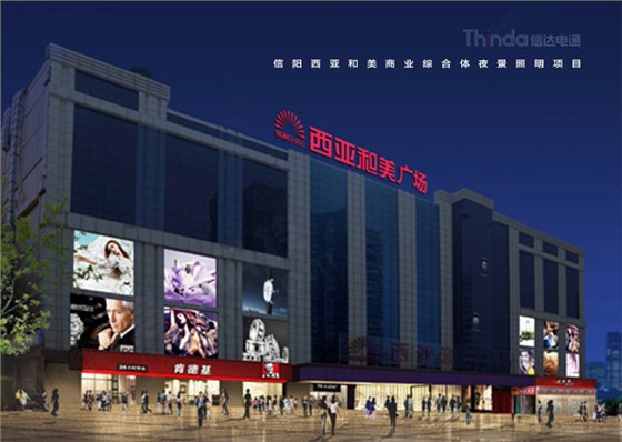 西亞和美商業(yè)廣場地處于河南省信陽市,位于東方紅大道、南臨北京南路、東臨統(tǒng)一街,周邊有鳳凰新世界、東方京城、軸線之廊,位置優(yōu)越,交通便利。這里信陽人民平時生活娛樂與購物餐飲的地方,也是IGA中國區(qū)優(yōu)秀零售商。目前商業(yè)廣場夜景照明已經(jīng)跟不上整體的商業(yè)需求,急需進(jìn)行照明設(shè)計施工改造升級,為此信陽西亞和美業(yè)主聯(lián)系到信達(dá)科技,雙方根據(jù)本案開展照明設(shè)計施工合作。