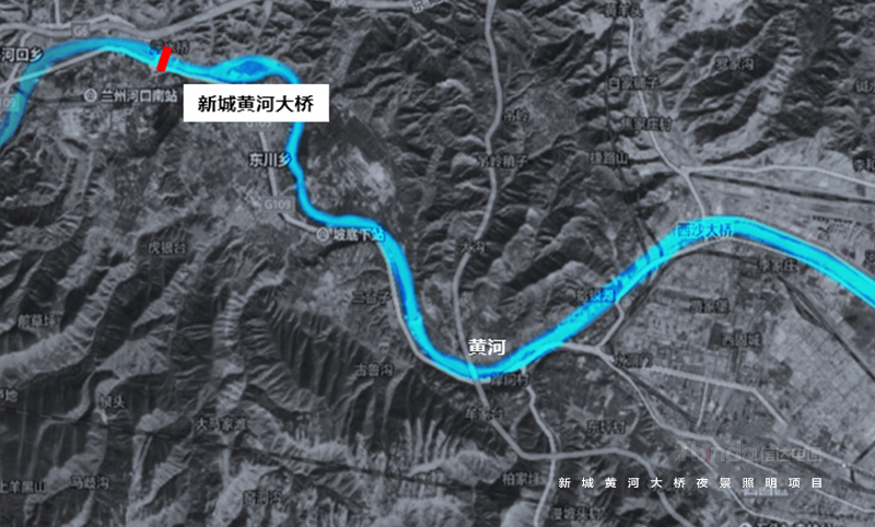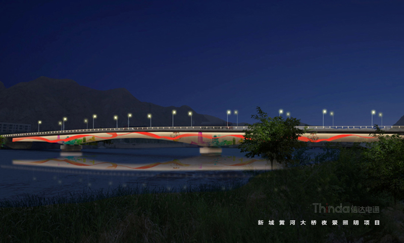 新城黃河橋是蘭州市對外交通西干線的重要樞紐,信達采用簡單的照明手法表現橋體的結構,凸顯橋體的敦實與厚重之感。暖黃光與彩繪圖案在橋底相繼呈現,展現大橋的不同形態。