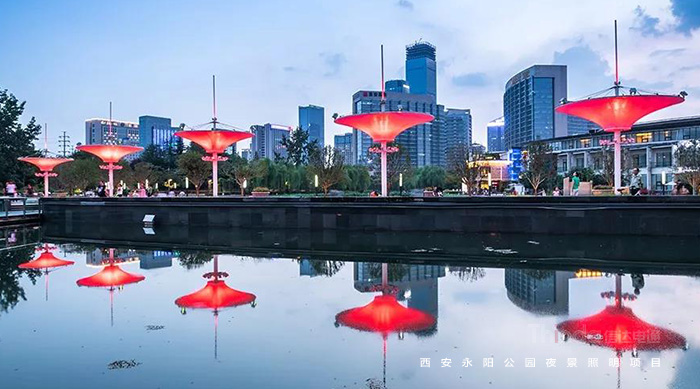 永陽公園是西安一個別開生面的科技公園,因地處唐代長安永陽坊而得名,位于西安市丈八東路和西灃公路十字路口,是由西安高新技術(shù)產(chǎn)業(yè)開發(fā)區(qū)興建,占地10萬平方米,2006年對外開放。繼2016年完成西安高新區(qū)夜景亮化設(shè)計之后,信達電通對永陽公園進行夜景照明規(guī)劃設(shè)計。
