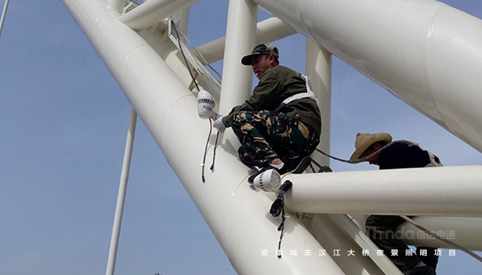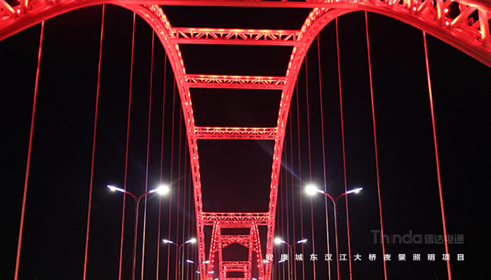 信達(dá)電通是本大橋的亮化工程施工單位,負(fù)責(zé)敷設(shè)管線、安裝LED燈具、調(diào)試照明效果、控制系統(tǒng)調(diào)試等工作,同時(shí)我們?cè)陉兾魑靼驳姆止镜某闪閲鴥?nèi)西北部地區(qū)的亮化工程提供了更加便利的服務(wù)。在施工前期我們技術(shù)人員開展了技術(shù)交底工作,確保大橋的亮化工作的順利進(jìn)行。