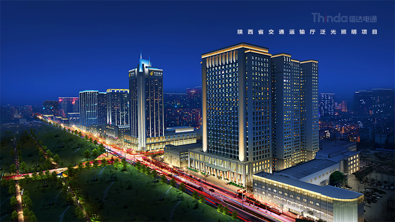 陜西省交通廳是2016年西安高新區整體區域照明設計規劃的一份子,電通根據建筑特點以及所處的地理位置結合周邊的建筑和景觀,對陜西省交通運輸廳進行照明設計改造工作。設計后的夜景照明效果強調天際線效果,同時增加建筑立面層次感。暗區與明區想映襯,凸顯建筑主體。