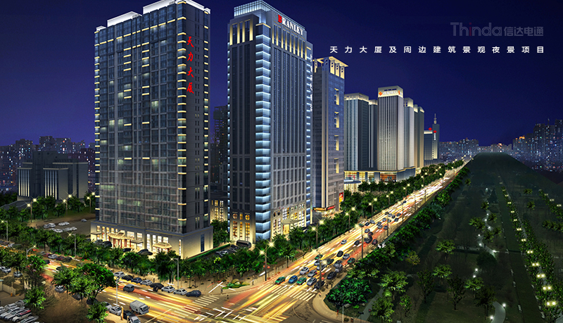 天力大廈坐落于西安高新區(qū)灃惠南路與科技四路的交匯處,人口聚集,交通便利。在設(shè)計(jì)方面,信達(dá)增加天力大廈建筑立面及頂部的照明,提升夜景照明的層次感,強(qiáng)調(diào)天際線效果,與西安高新區(qū)整體夜景氛圍保持一致,并且四種亮燈模式:節(jié)日模式、平日模式、節(jié)能模式、深夜模式,通過智慧控制充分滿足燈光需求。