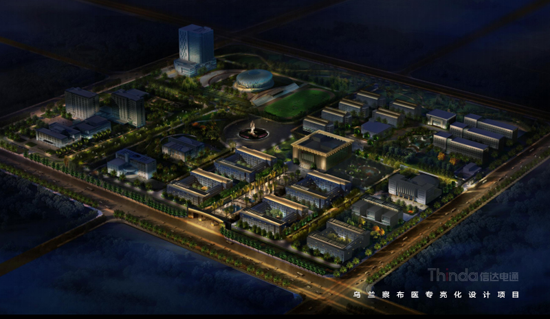 本項烏蘭察布醫學高等專科學校位于內蒙古自治區烏蘭察布市集寧新區,是在1959年成立的烏蘭察布市衛生學校基礎上,經國家教育部2009年3月6日批準升格的內蒙古唯一的一所獨立的醫學高等專科學校。學校以培養實用型醫學專科人才為主,以中職教育為輔,兼顧成人專科教育和短期專業培訓,本項亮化設計將圍繞烏蘭察布醫專進行。