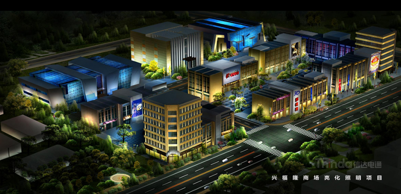 興福隆商貿(mào)城建設(shè)工程已落幕,現(xiàn)已全面開展其建筑亮化照明及夜景照明亮化工程,北京信達(dá)電通參與了此項(xiàng)目的建筑照明亮化改造工程。